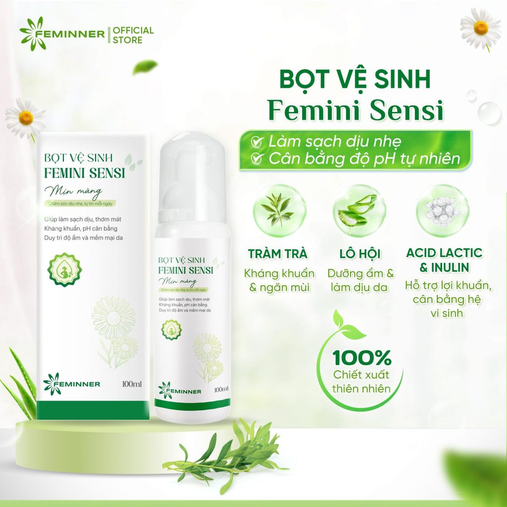 Bọt Vệ Sinh Phụ Nữ Femini Sensi Feminner 100ml – Giảm ngứa, Viêm nhiễm, Kháng khuẩn & khử mùi, Dịu nhẹ cho da nhạy cảm, An toàn cho mẹ bầu