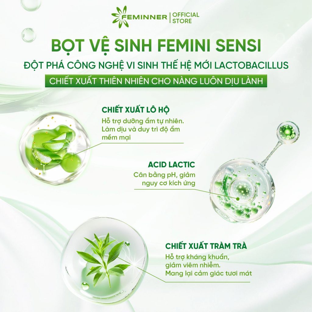 Bọt vệ sinh Femini Sensi giúp nuôi dưỡng & tăng cường hệ vi sinh có lợi, duy trì sự cân bằng pH, giảm viêm, giảm mất nước và củng cố hàng rào bảo vệ cô bé. Dạng bọt mịn giúp vệ sinh êm ái, tránh ma sát quá mạnh như dùng gel, mang lại cảm giác dễ chịu